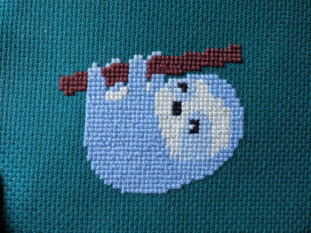 This design is simple but so cute. I made it out of leftover thread on black Aida cloth, so I'm not 100% sure what the colour combo would have been had I followed the recommended thread colours. I love the end results of mine though.